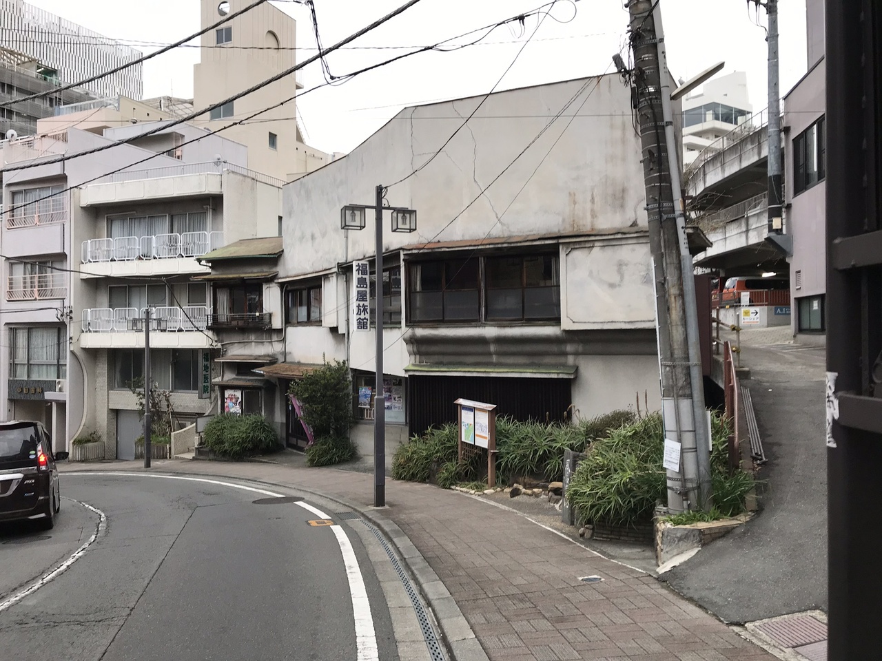 風呂の湯・水の湯は、安くて日帰り入浴ができる福島屋旅館を探して歩いていると、福島屋旅館の前にあった。