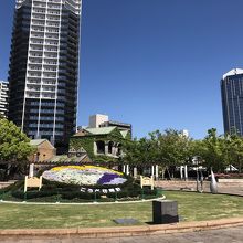 花時計の直径はゆうに5メーターはありそうで電子時計のようにスムーズに針が時を刻んでいる。花時計の向こうにはシックな建物がある。