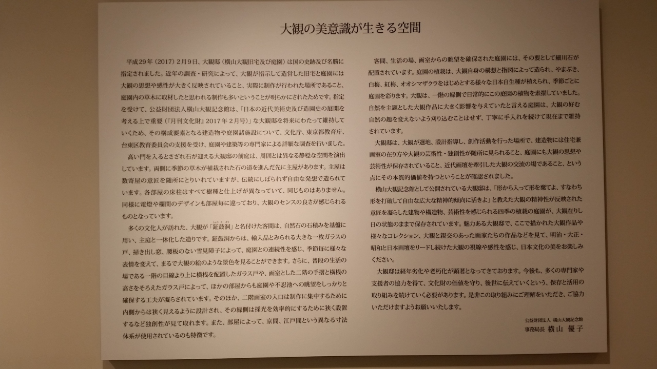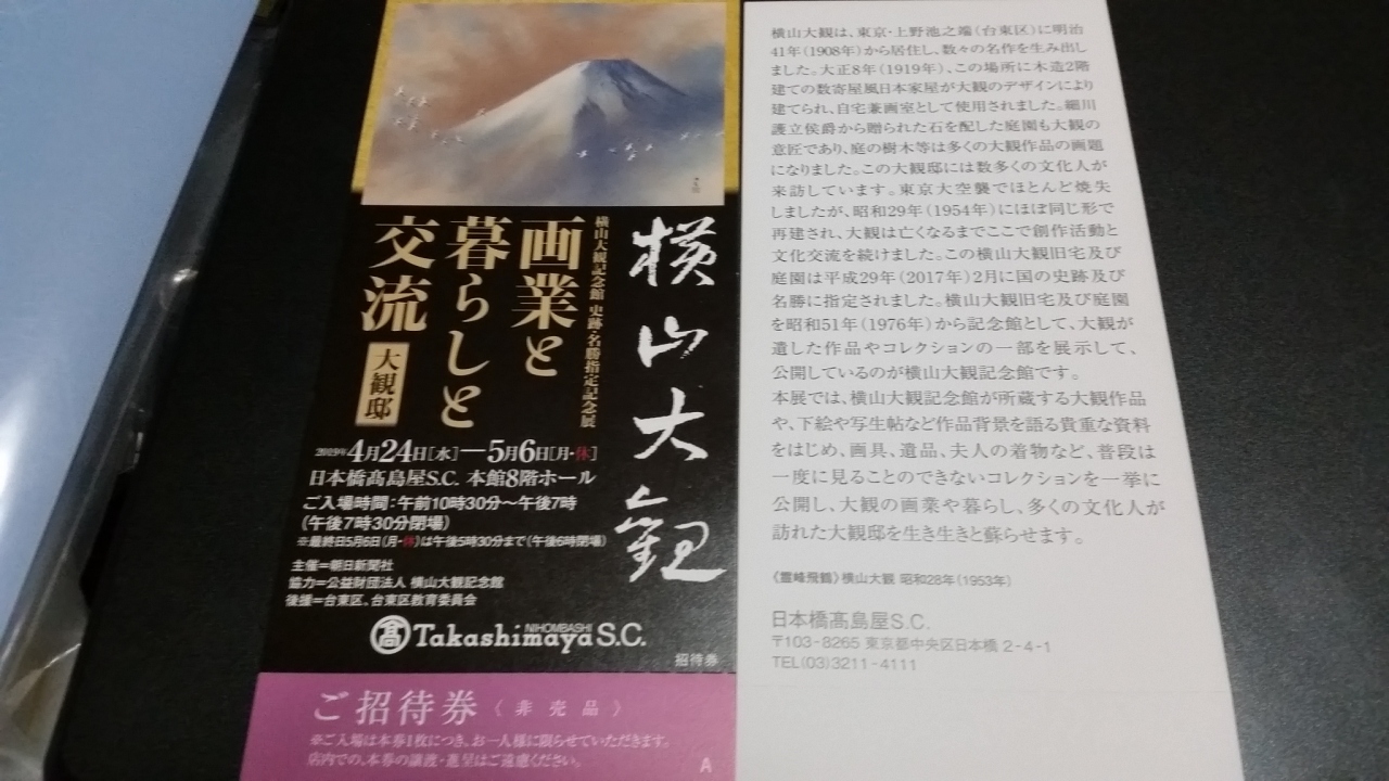 新聞屋さんからチケットをいただいたので、「横山大観 画業と暮らしと交流」を見に行きました。メトロ日本橋で下車し、案内板の通りに行くと、方向音痴の私でも迷わず着きました。本館と新館などがあり、連絡通路でつながっているのですが、その点だけ迷いました。