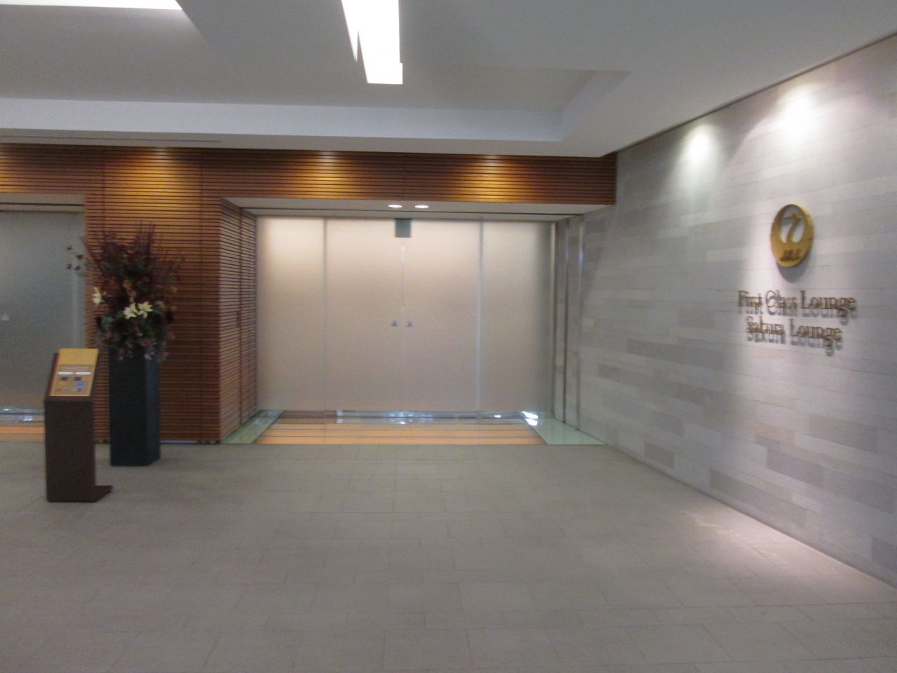 JALサクララウンジに入るとつねに3人程度のスタッフが受付にいました。JALのシンボルである鶴の折り紙がカウンターに置かれており、和の空間がありました。受付に立つとJALのマークが入ったカーペットがあり高級感を感じます。そして、自分がお客であることを再認識させてくれる対応をしてくれます。