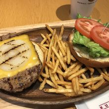 ハワイ生まれのハンバーガー店。店內にはヤシの木やブーゲンビリアの造花がたくさん飾られており、音楽もハワイアンです。お料理はハンバーガーが中心で、見た目よりボリュームありお腹いっぱいになります。パンの種類やチーズも選べます。