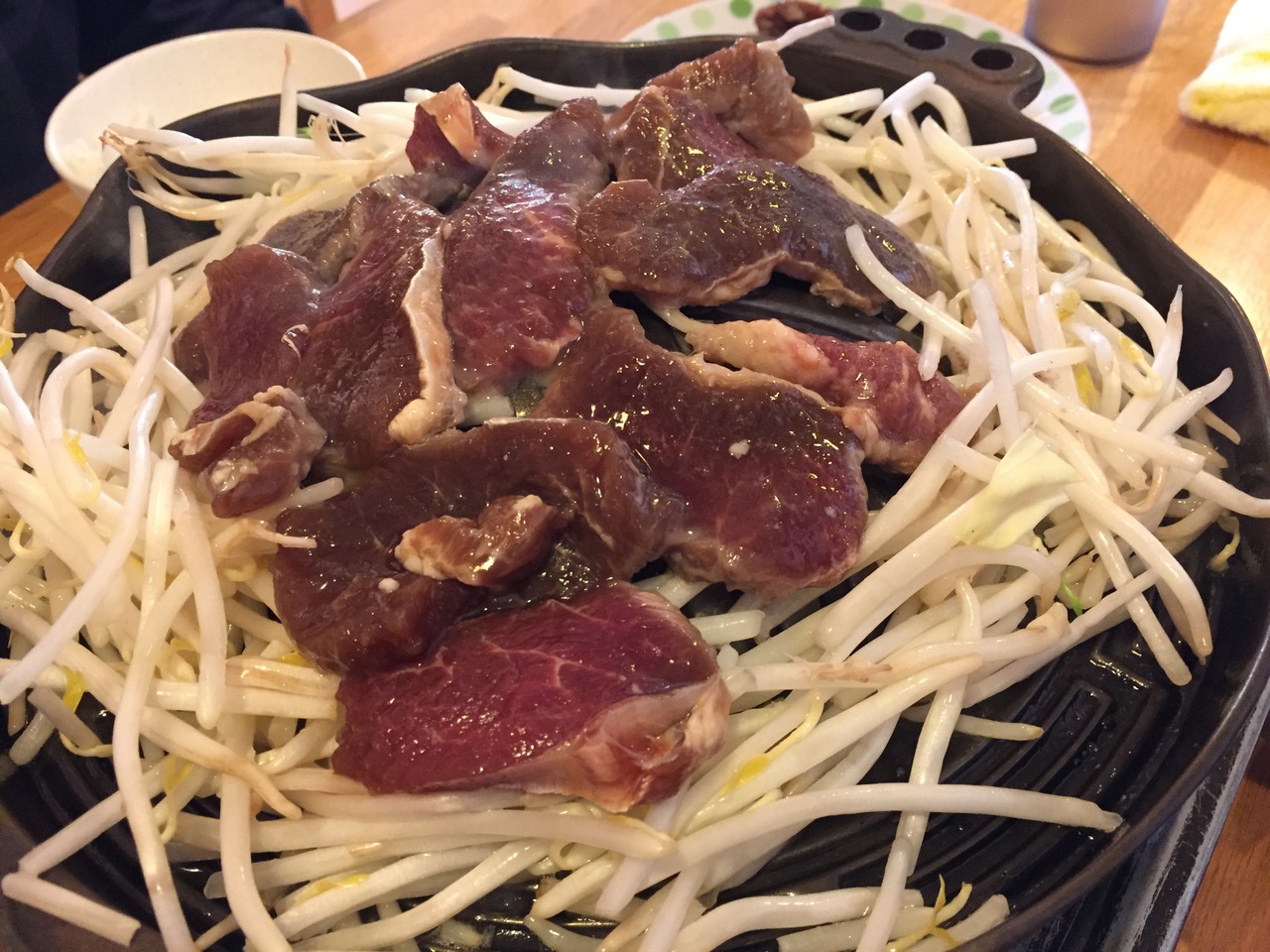 1時間食べ放題1,500円程度でお腹いっぱいジンギスカンを食べることができます。札幌に行った帰りに寄ってよく夕食としていただいてます。野菜はもやしとキャベツのみ、お肉も1種類、ごはんとお冷しかありませんが、お肉は柔らかくて美味しい。ジンギスカン鍋で焼いていただきます。
