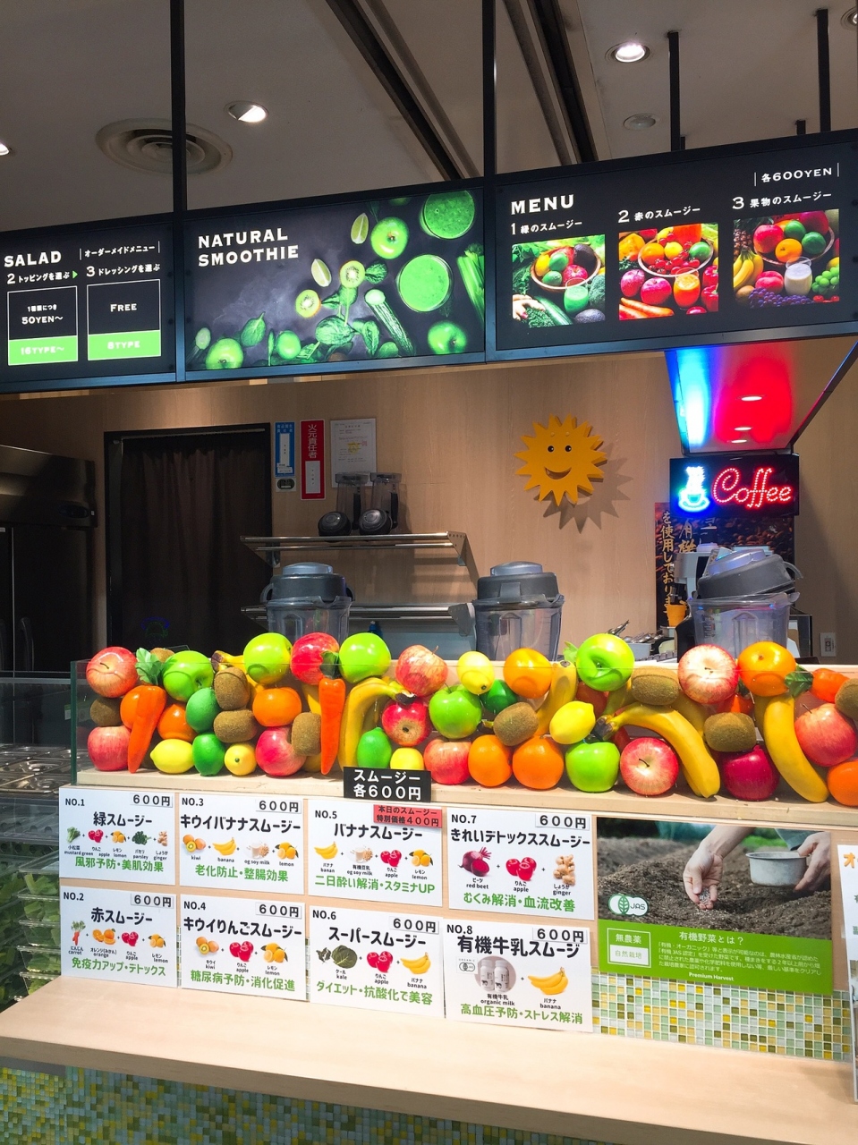 羽田空港から朝のフライト利用の前に立ち寄ったお店です。 オーガニックの野菜や果物以外の食料品も置いてあります。 羽田空港第1ターミナル(東京モノレールの改札の近く)にあり、これから旅行に行く人や、旅行帰りの荷物が多い人には、生の野菜や果物を買う人ってあんまりいなそうなので、このお店のターゲットは誰かな?って気もしますが...。 でも、気軽に飲める有機野菜や果物を使ったスムージーの販売は嬉しいですね。 私はここでも大好きなバナナミルクスムージーを。 有機牛乳がとても濃厚で美味しいスムージーでした。 スムージーはちょっとお値段が張りますが、飲む価値ありますよ!