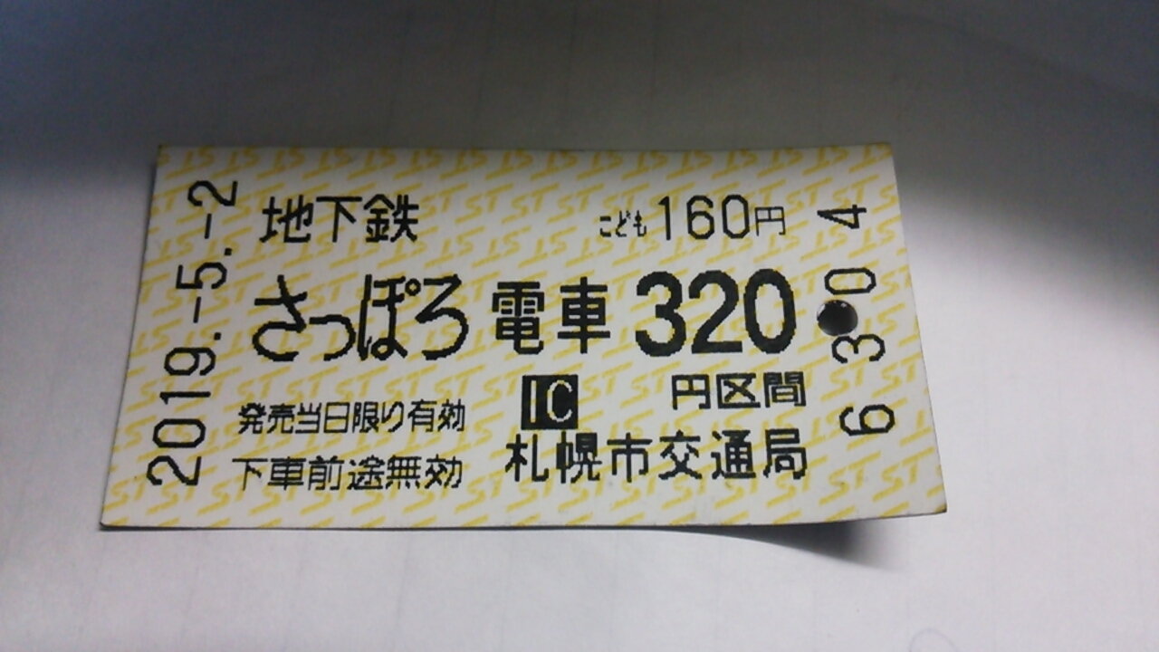 この場合、通常だとさっぽろ~大通間は200円、西四丁目~中島公園通間も200円程度しますが、事前に乗り継ぎ券を購入したところ、320円で済み、80円得しました。