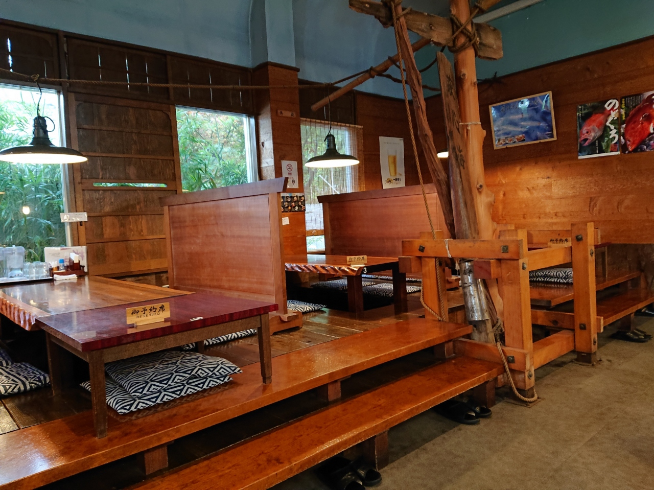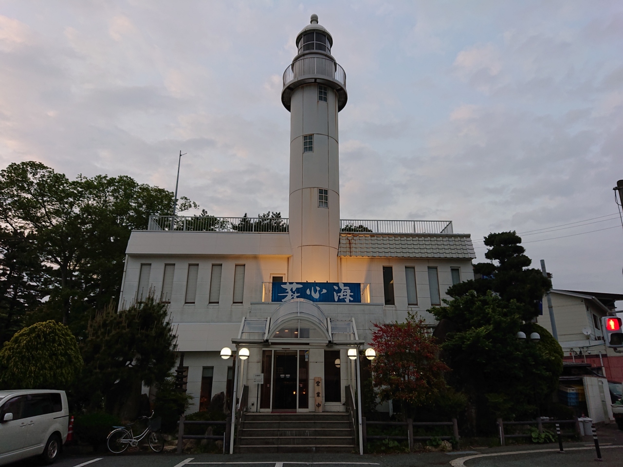 そびえたつ灯台が目印です。活きイカが名物のお店ですが…入口で美人店員さんに「ごめんなさいね、今日はイカが入ってないのよ」と言われ。ガーン。ま、仕方ないかぁ。天候不良で、ここ一週間ほど入荷がないそうな。「こんなこと、珍しいんですよ」だそうな。