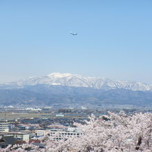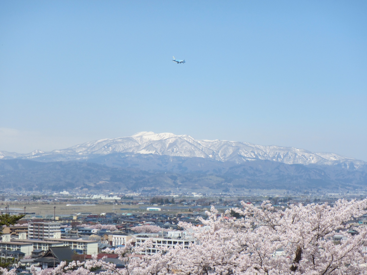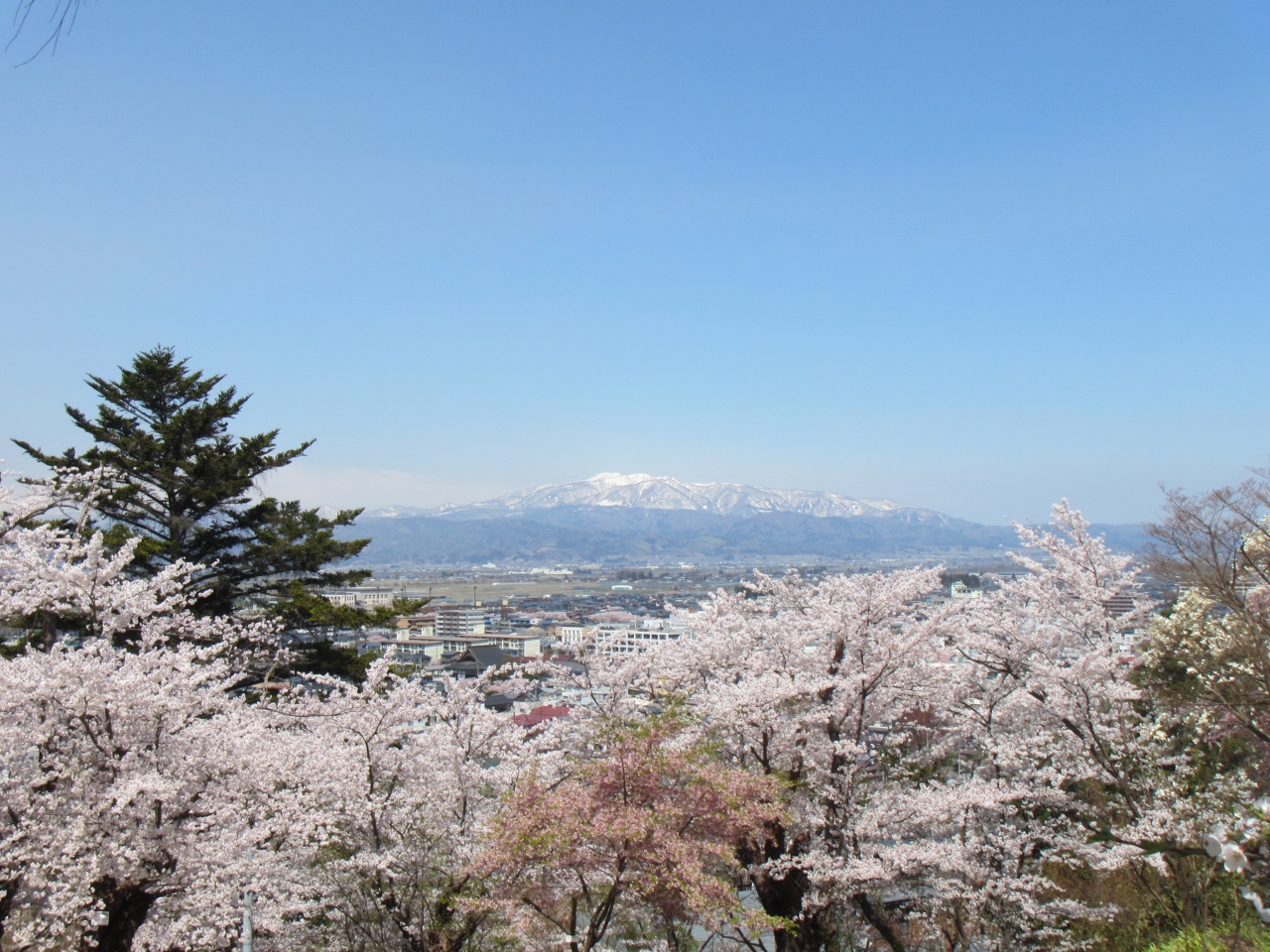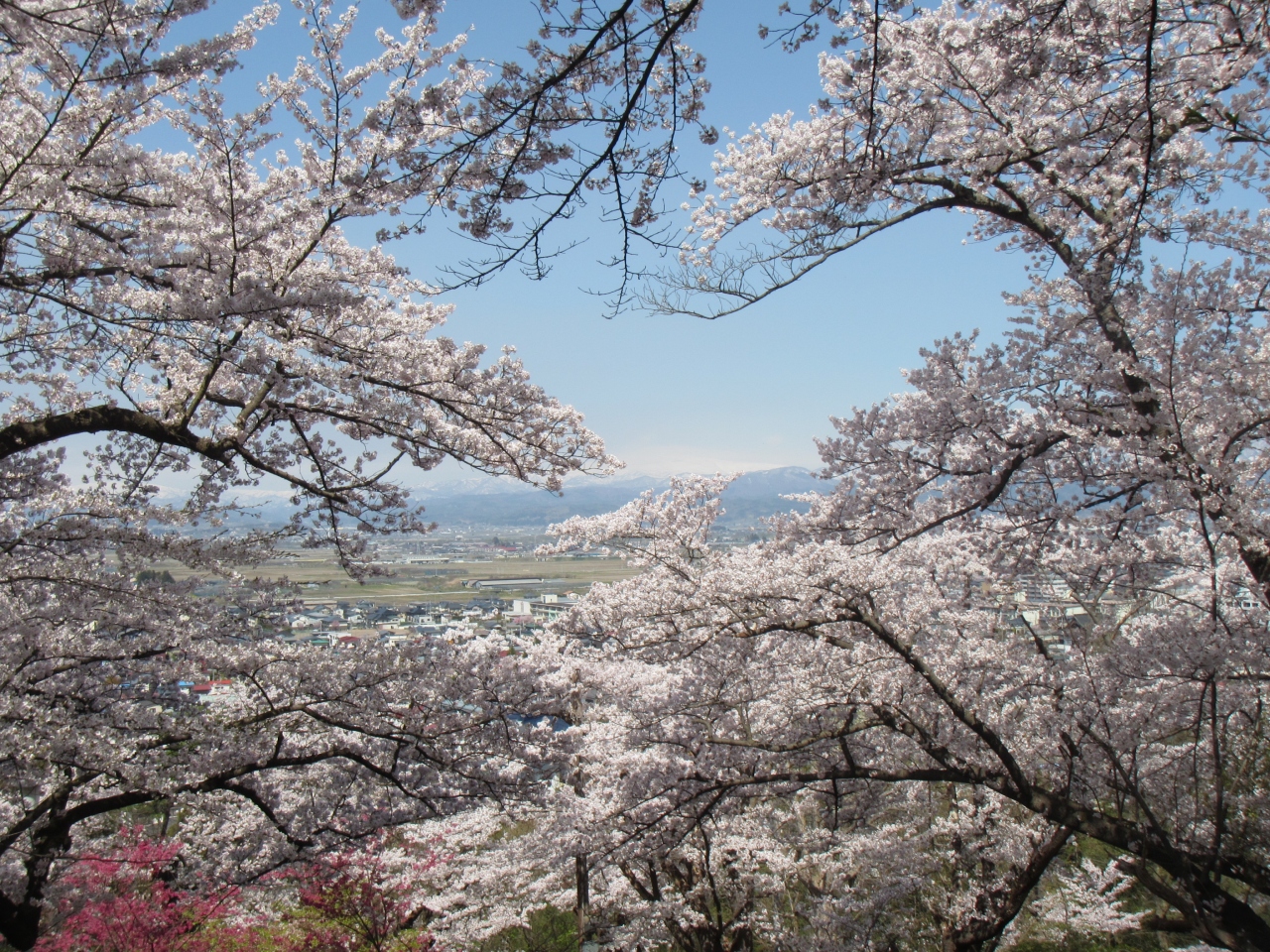 なお、人混みはちょっと苦手で、落ち着いて桜を楽しみたいという方は、平日に訪れるとよい。ただし、出店はちょっと残っているが、祭りは行われていない。更に、頂上から西側の旧東村山郡役所のある方へわずかに下った所が穴場で、傾斜地なためか、祭りの最中でも訪れる人は少なく、平日は皆無に近い。それにも関わらず、頂上部に劣らず、桜で覆われている上、そこから眺める月山や葉山がきれいに映える。頂上の展望台からも月山や葉山の眺めが素晴らしいが、西側の斜面から眺める、桜に包まれた月山も見事なものだ。傾斜地とはいえ、ここに誰もいないのは不思議で、「人の行く裏に道あり花の山」とは、まさにこのことかと思った。