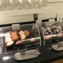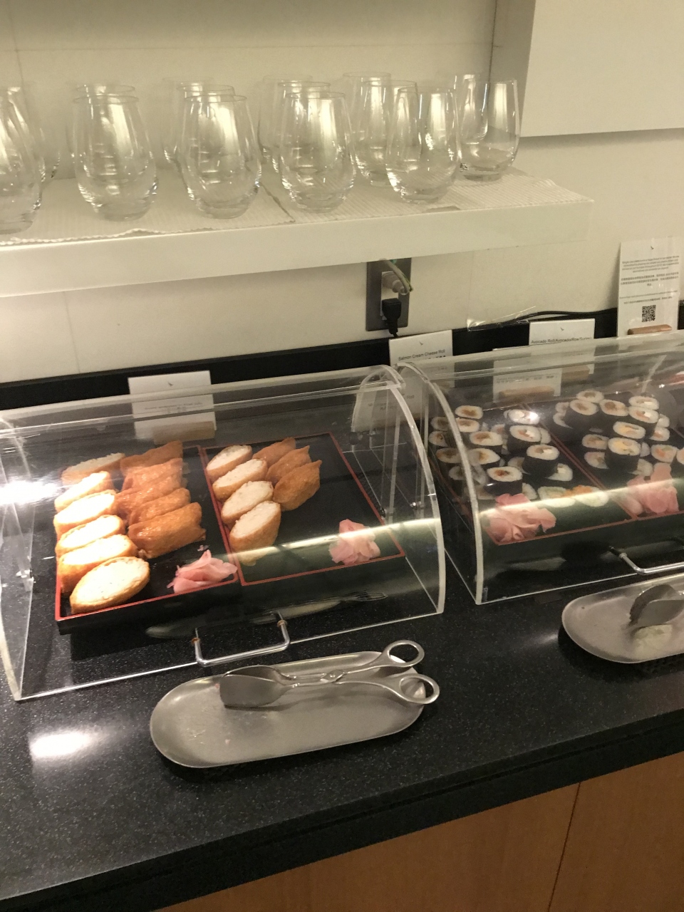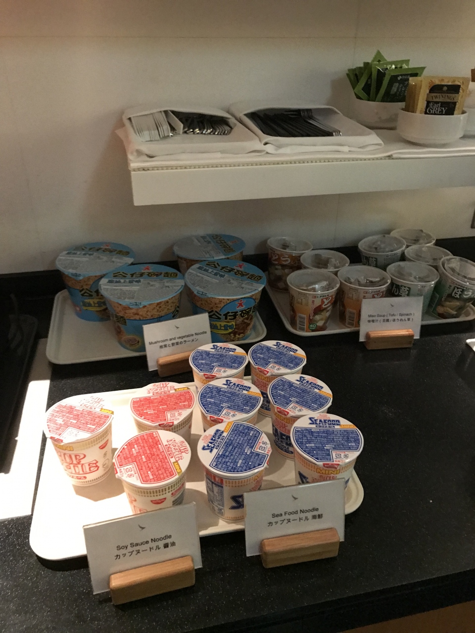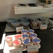 食事は、海苔巻きやパンなどの軽食がありました。カップラーメンは、お馴染みのものに加えて、珍しい海外の商品も置いてありました。アイスクリームは、ハーゲンダッツが3種類(レーズン、バニラ、抹茶)いただけます。