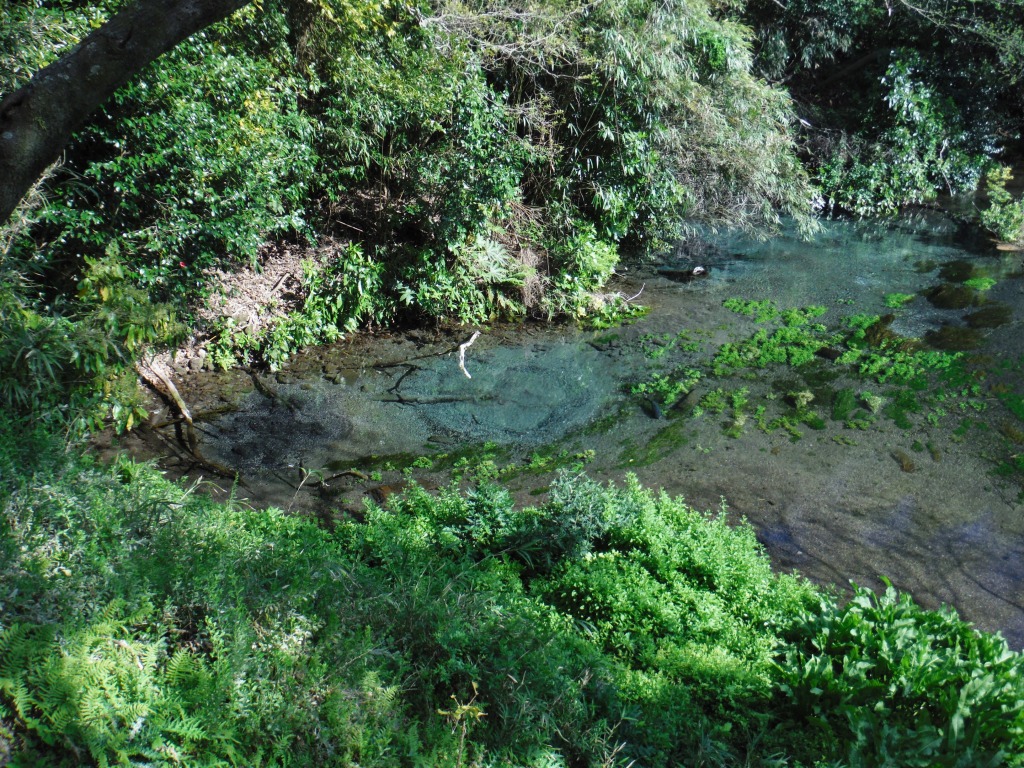 柿田川公園内にある2つの展望台から水が湧き出ている様子を見ました。特に第1展望台からは川底から砂を巻き上げながら水が湧き出ている様子を見ることができました。これらの湧き水が柿田川を作っているとのことで、湧き水の量がいかに多いのかが実感できました。