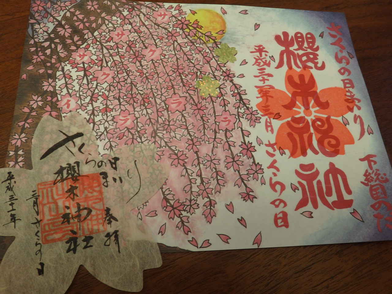 「さくらの日まいり御朱印」を持っていると、次に御朱印を貰う時に申し出れば、さくらシールをもらえる。それを「さくらの日まいり御朱印」に貼り、シールが12枚揃うと記念品をいただけるそうだ。綺麗な桜の御朱印をいただけて嬉しかったのだが、ちょっと商業的すぎる気もしてしまった。