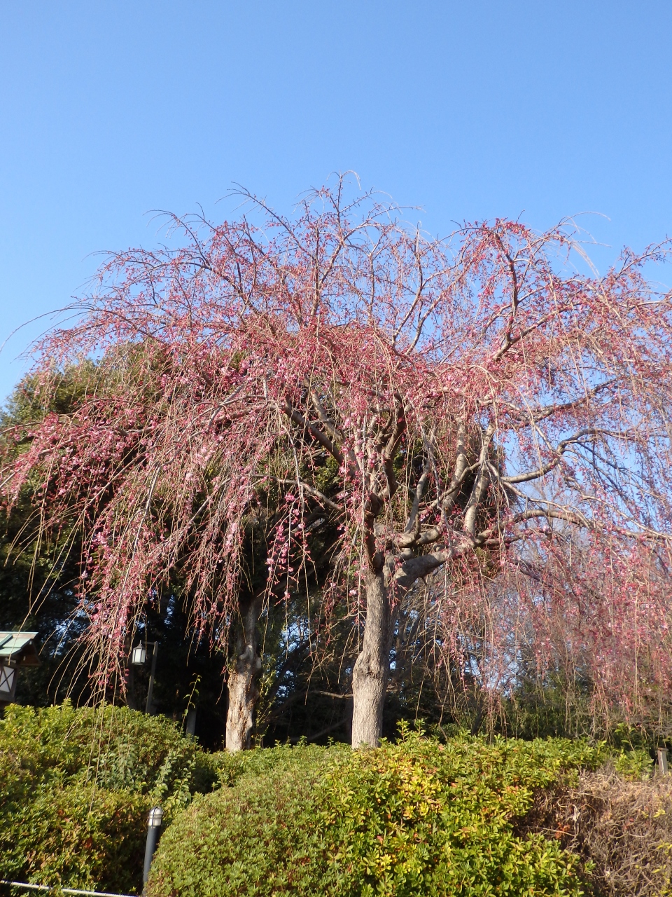 駐車場に福島の三春滝桜のクローン種のしだれ桜が植えられている。訪れた時は咲き始めで、満開の時期に見てみたかった。