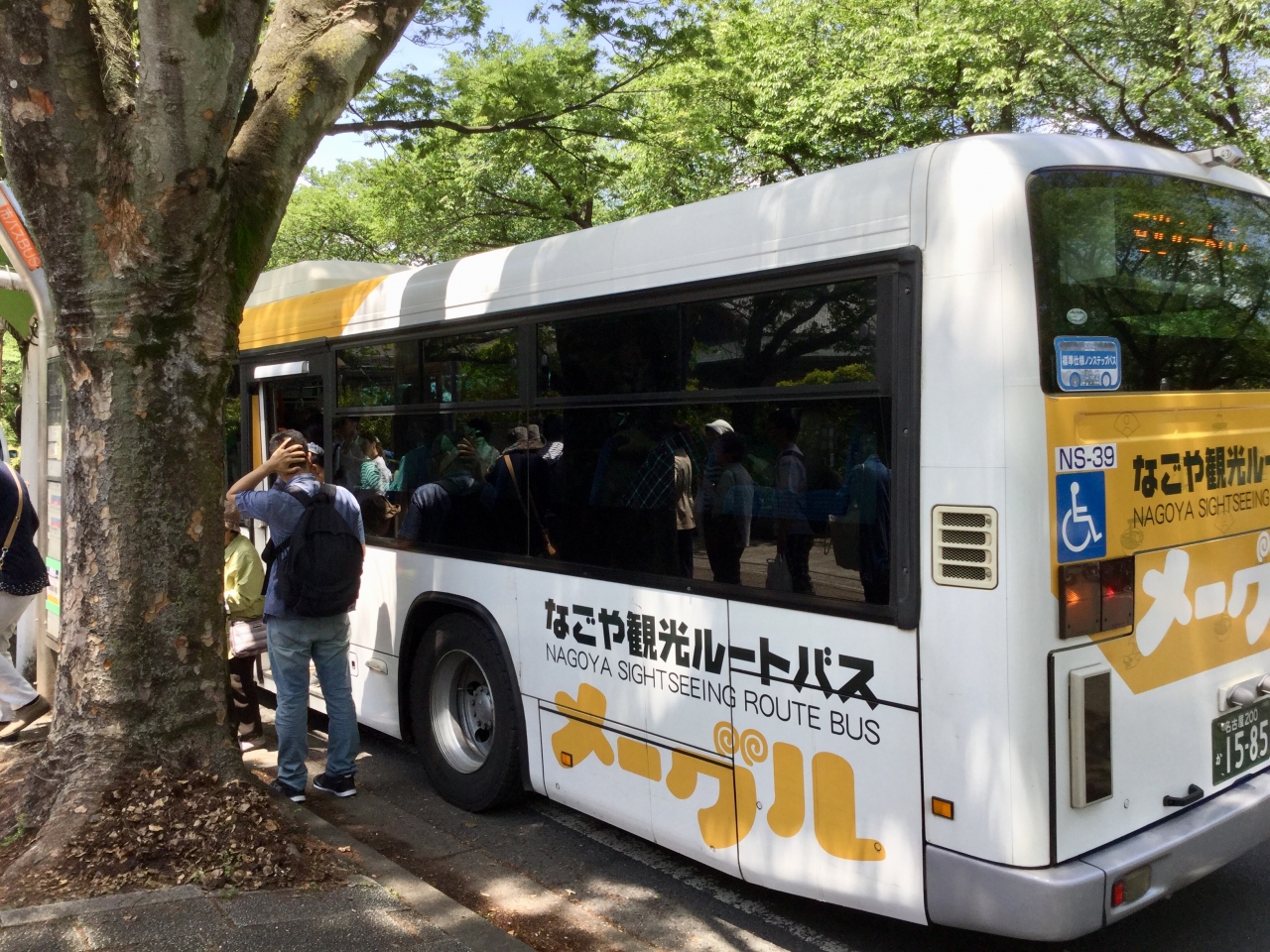 名古屋駅、名古屋城、徳川園、名古屋塔など、名所を廻ってくれるので、初めて訪れる方用の気軽な観光バスとしてオススメですが、20~30分間隔なので、場所によっては一度に乗る人が多く、結構混雑します。