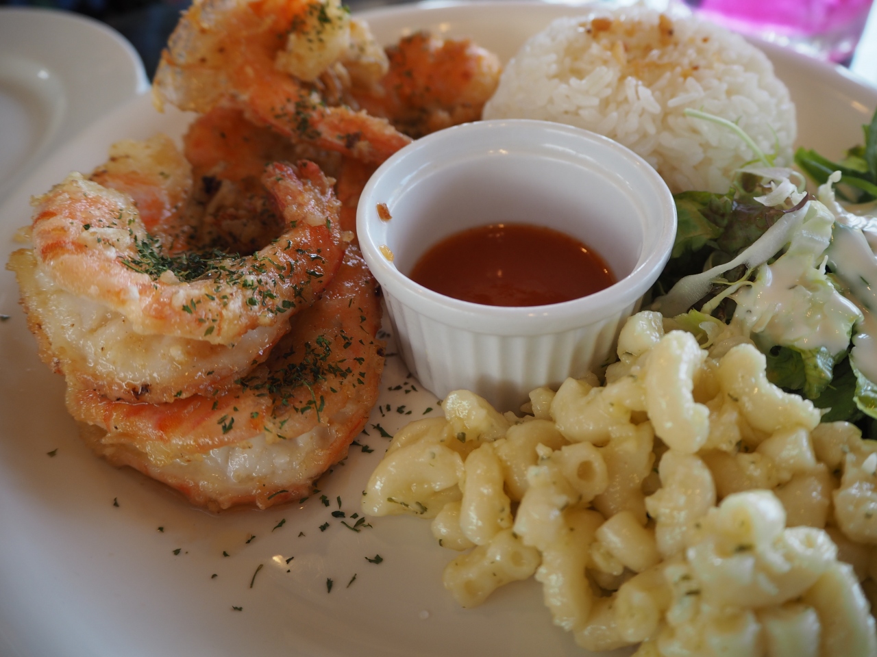 沖縄の瀬長島ウミカジテラスにあるオシャンティなカフェです。那覇空港から近いので立地は便利だと思います。我々は到着日に最初に立ち寄りました。価格はやや高めでしたが、ガーリックシュリンプの海老はぷりぷりで味付けも満足できました。