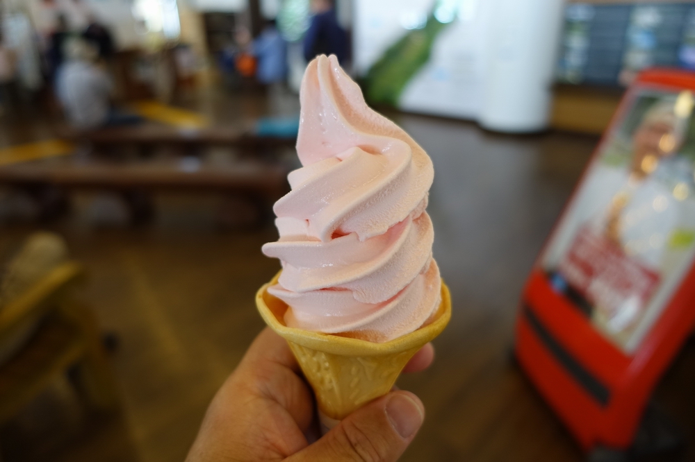 夏休み中ということもあり結構な人出。特にレストランは、普段ならあの広さで充分なんでしょうが繁忙期は収容能力が全然足りません。混んでいて相当待ちそうだったので諦めて別の店で食べました。カウベリーのこけももソフトがおいしかったです。売店やレストランのレシート呈示で50円引きでした。