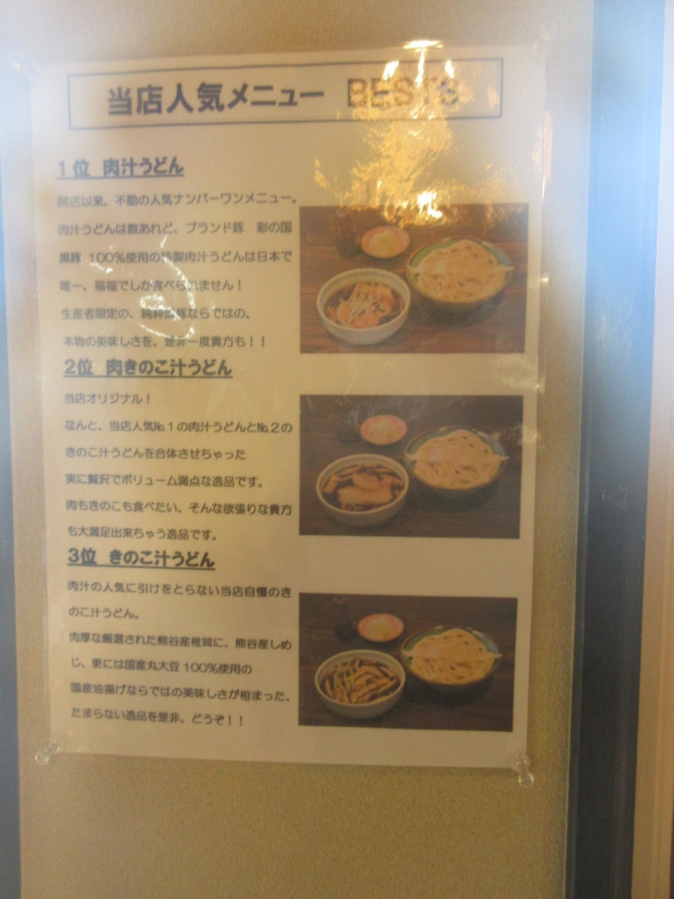 元祖という名前に惹かれて行ってみました.そもそも熊谷うどん自体を知りませんでしたが,注文して出て来たものは極太の腰の強いうどんで,それだけでも十分にインパクトがありました.注文したのはつけ麺でしたが,麺がこれだけ太いと,スープが直ぐに冷えてしまい,つけ麺よりも煮込みうどんあたりの方が良いと思いました.お店はセルフサービスで,入口の脇にある自販機でチケットを購入する方式です.妻沼聖天山の近くですので,参拝がてらに訪れても良いと思います.
