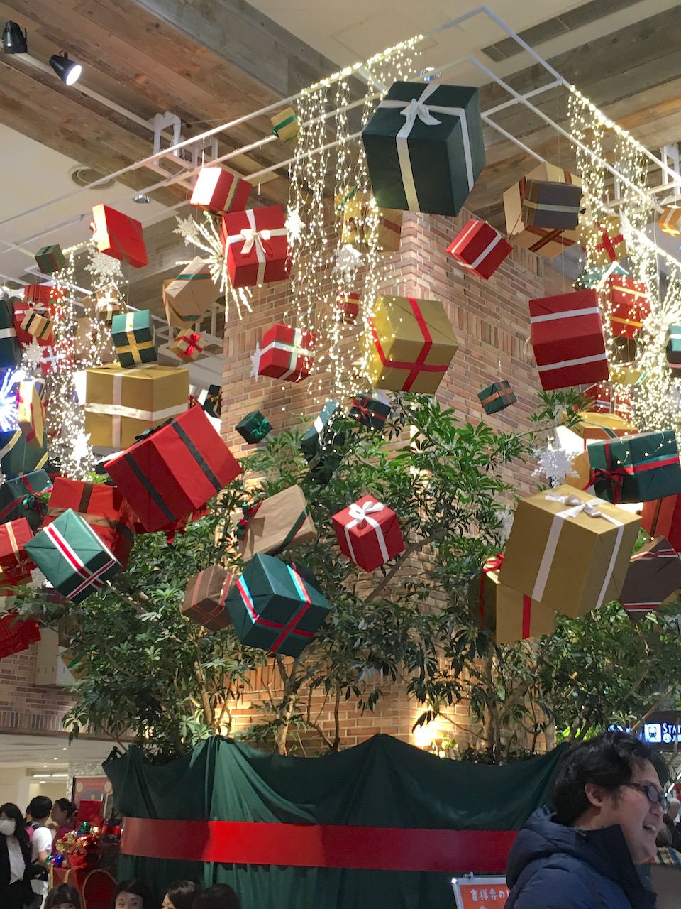 11月に入ってから1F中央のエントランスに行くと、天井近くにクリスマスの飾り付けが行われていました。