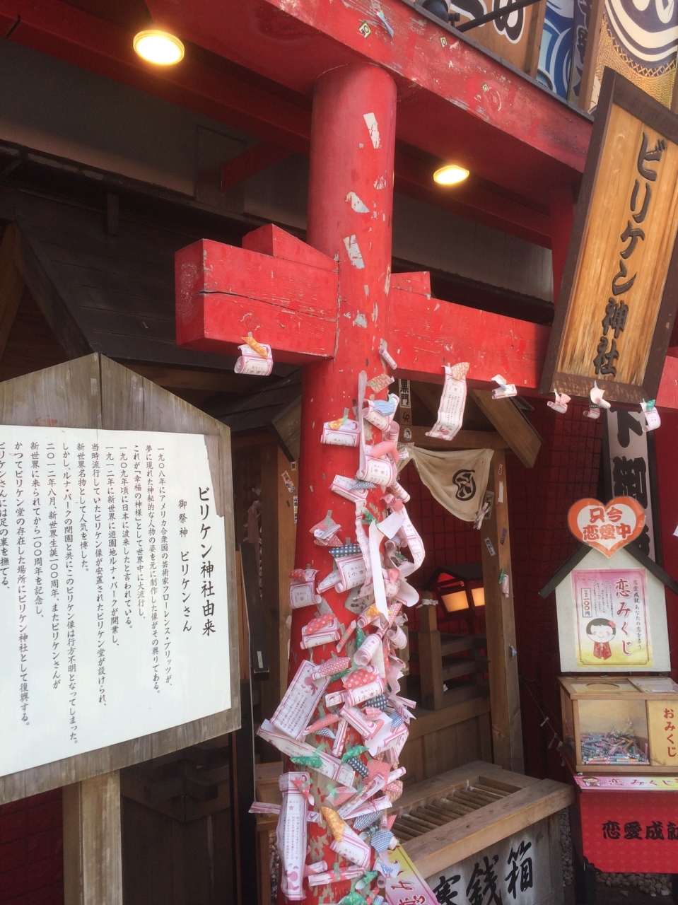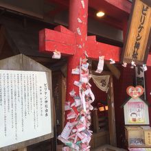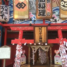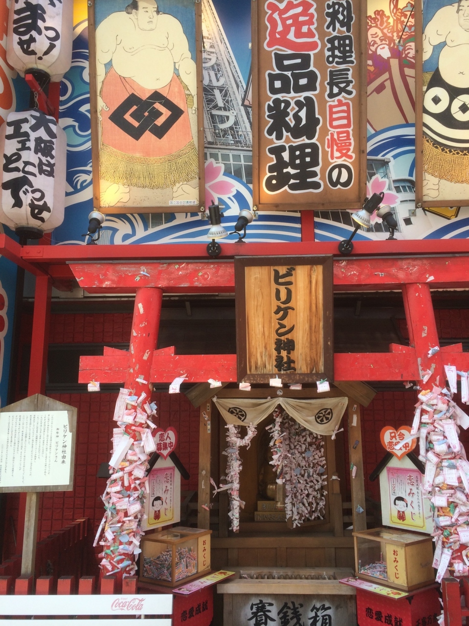 通天閣の正面の通り沿いにありますが、目立つ神社でありながら通天閣の写真を撮るのに夢中な人ばかりで、見逃している人が多かったです。神社と言っても遊び心ある神社です小さいながらもお賽銭箱があり鳥居もあります。