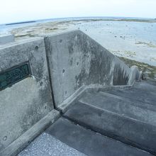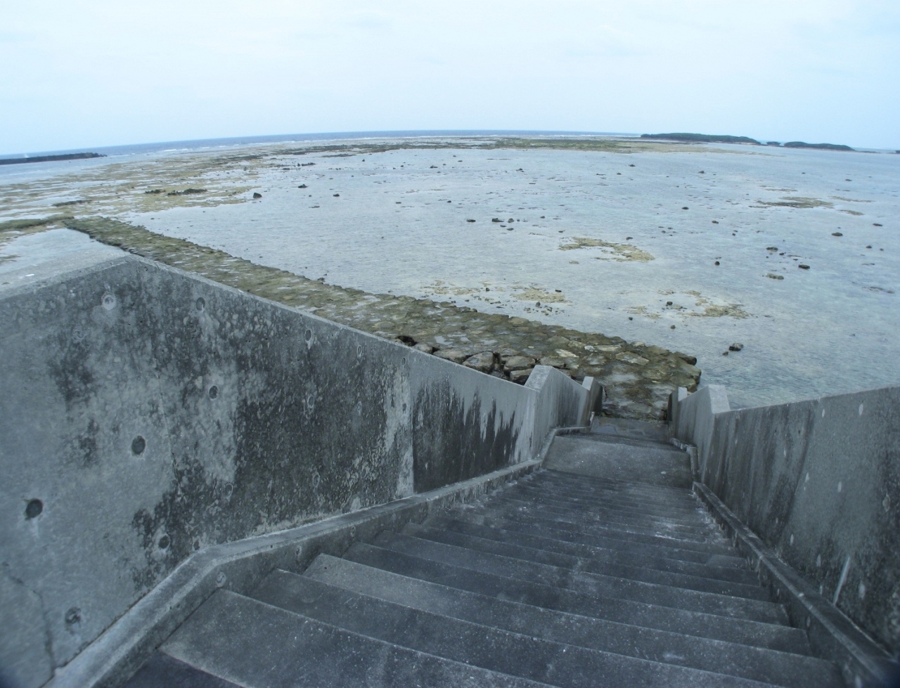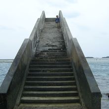 潮が満ちているときは海に歩道橋がある風景、でも干潮時はこの橋を利用すれば久米島から奥武島まで新奥武橋を使わないでも渡ることができます。