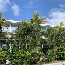 こじんまりした空港ですが、新しく建てられたとのことです。フライトも多くないので、預け荷物もすぐに出てきました。外に出ると、ヤシの木が植えられていて、いかにも南国って景色でした。空港名の書いてあるモニュメントがあったので、撮影ポイントになっていました。市内まで、バス便がありました。