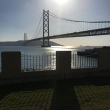 JR舞子駅や山陽電鉄本線舞子公園駅から徒歩ですぐの大きな公園です。明石海峡大橋はもちろんのこと、海岸や散歩道が非常に美しく配置されていて観光にも散歩にもとってもいいところです。駐車場もありますし、近隣にはホテルの付属レストランだけでなく、個性的なレストランが多くあるので食事にも困りません。