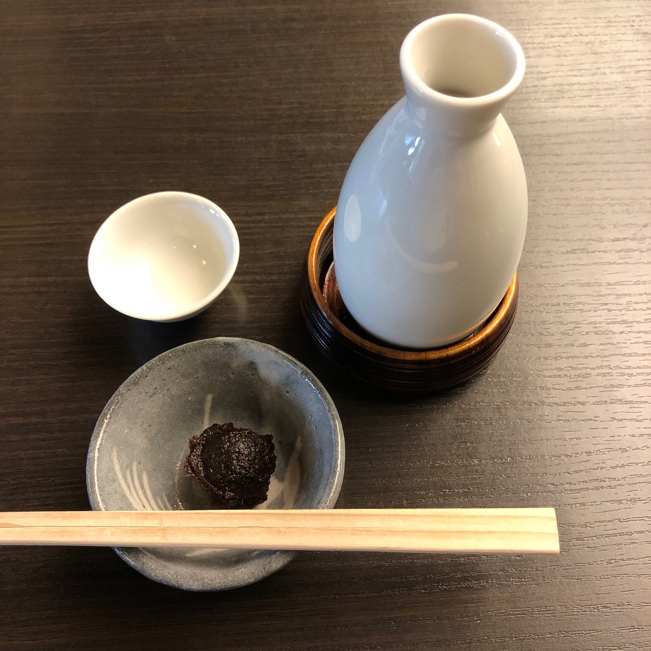 日本酒には、ネギ味噌が付いています。ごぼうが入っていて、風味も味もひとあじ違います。