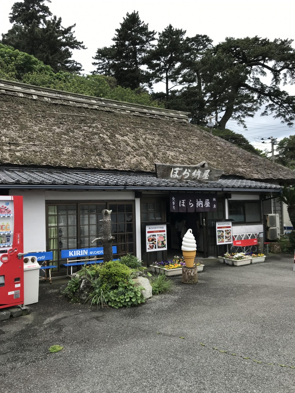 城ケ崎海岸の吊り橋から8分くらいの所にあります。ここにも駐車場があるので、城ケ崎海岸を散策した後、車でこの店まで来ました。また駐車料の「500円」のをとられましたが、食事をした人は、レジで返金されます。仕入れの関係か、品切れのメニューが多く残念でしたが、頼んだ料理は美味しかったです。直しをし続けているとのことですが、建物自体は400年くらいの歴史だそうです。