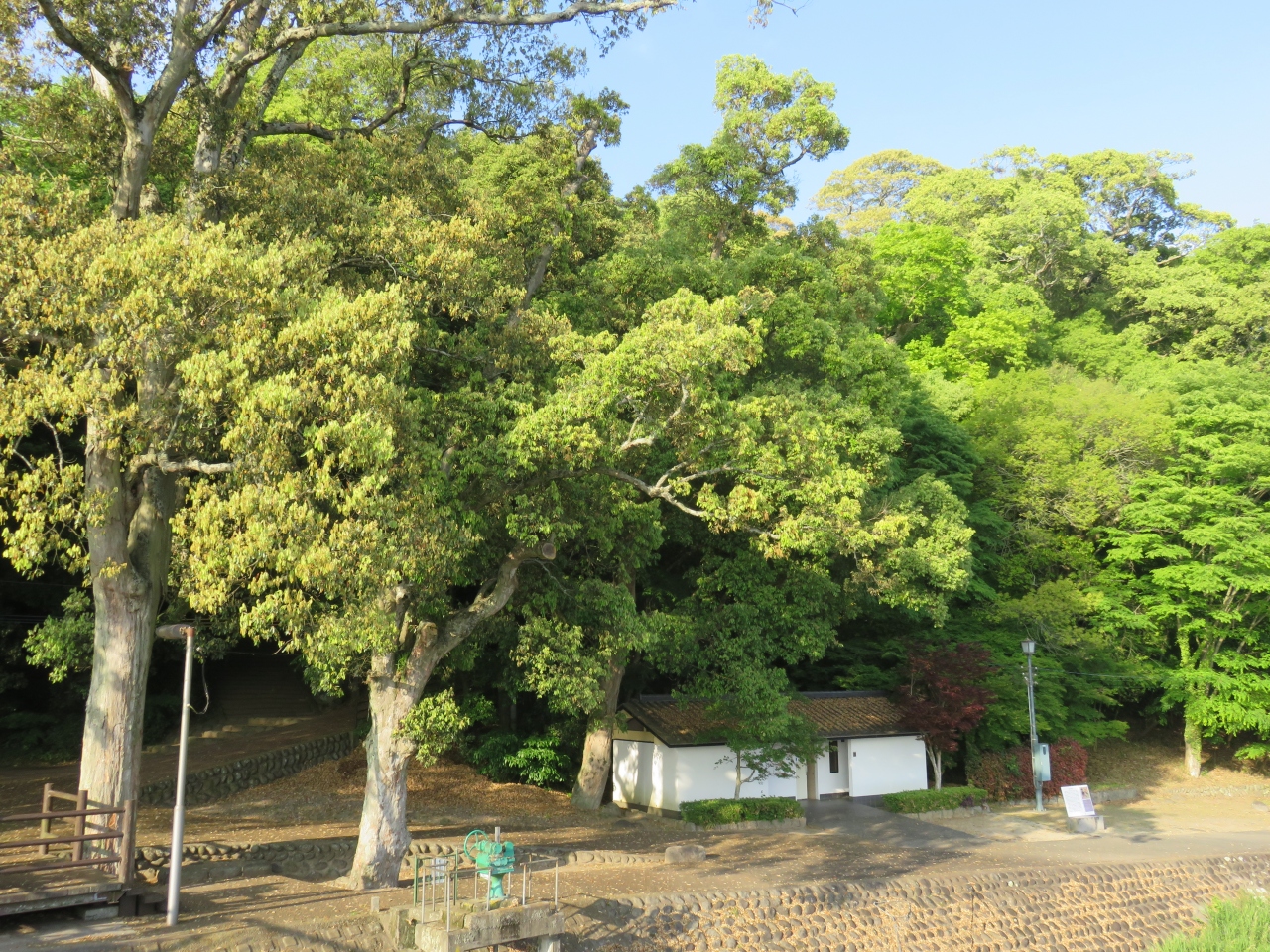 日田は三隈川沿いにあるうっそうとした森の亀山公園。読み方は「きざん」だそうです。失礼しました。公園もあって遊具も設置されています。