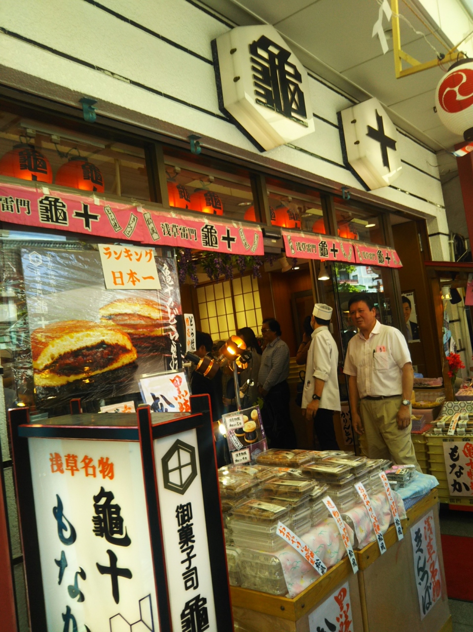 東京の人気観光スポット、浅草にあるショップです。浅草雷門通りにある和菓子の専門店です。どら焼がとても人気で朝から行列ができていました。ふわふわの生地に上品な甘さのあんこがとてもおいしかったです。もなかもあります。