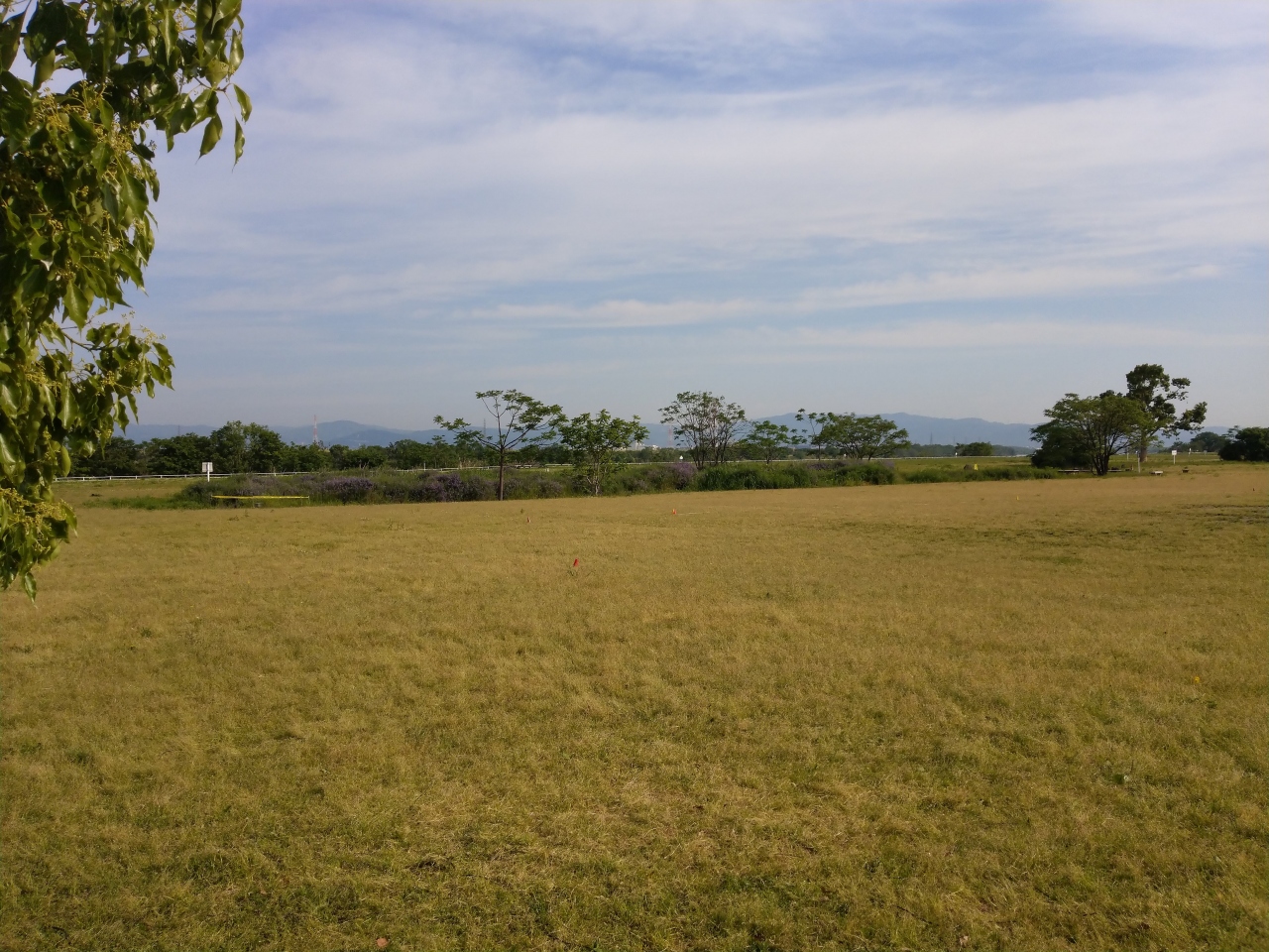 5月の天気の良い日は、風も気持ちよくて河川敷で過ごすのには最高です。グランドの草花もだいぶ元気よく、走り回りやすかったです。朝7時ごろからバーベキューの人もたくさん来ておりました。天気のいい日は河川敷は最高ですね。