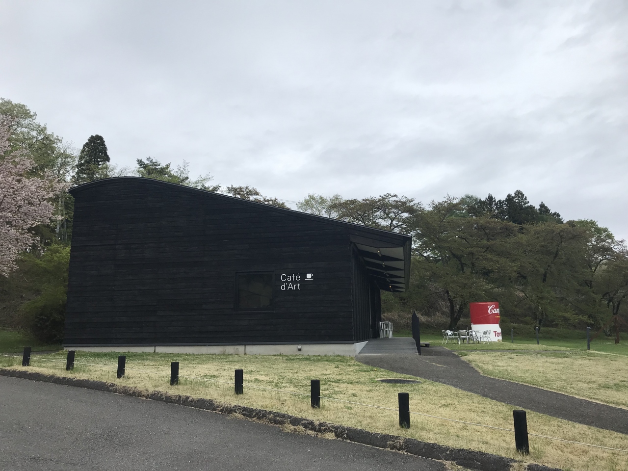 横尾忠則のポスターもあったりして、また、建物は、美術館の展示室と同じく真っ黒で、ちょっとおしゃれなカフェでした。