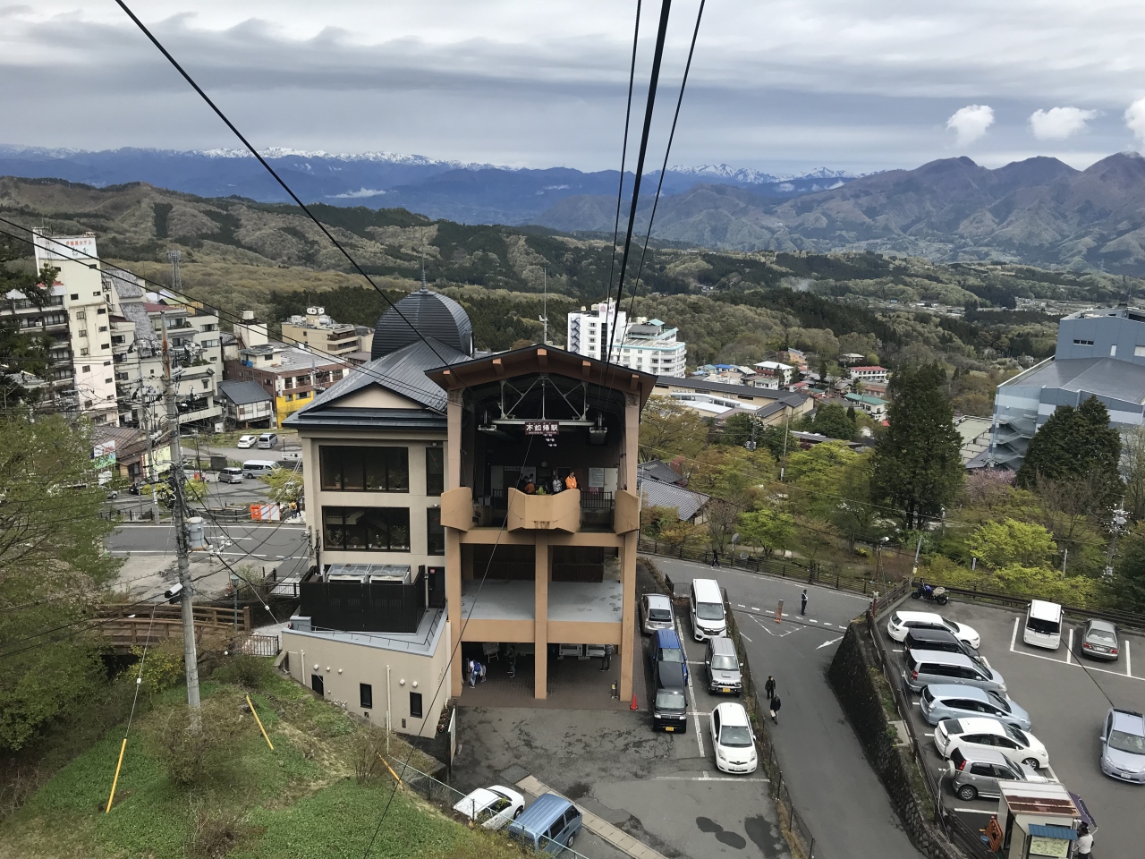 令和元年の最初の日、即位の日ということで、料金は半額、ありがたや~です。5分くらいでてっぺんの見晴駅に到着。上ノ山公園の展望台から、遠くに白い山並みが望めました。