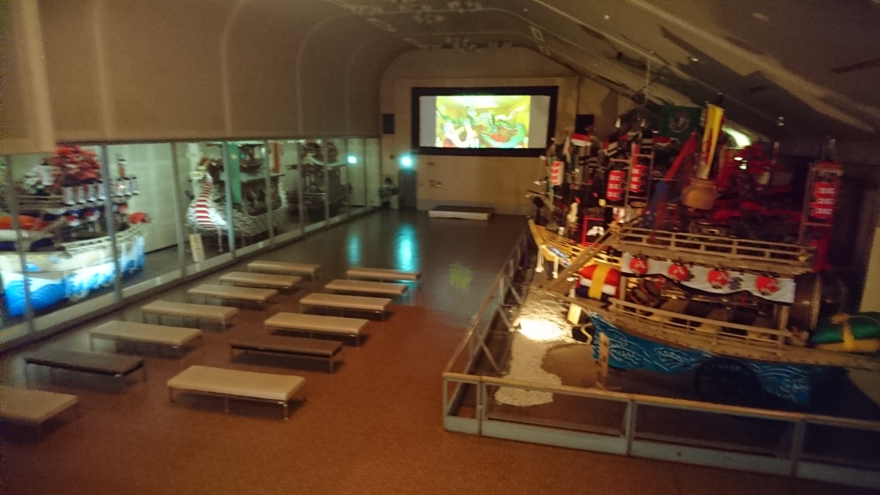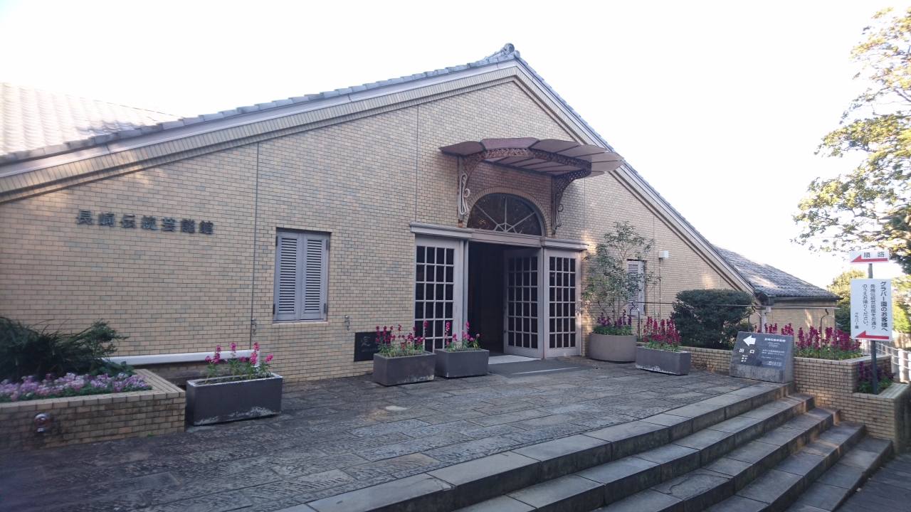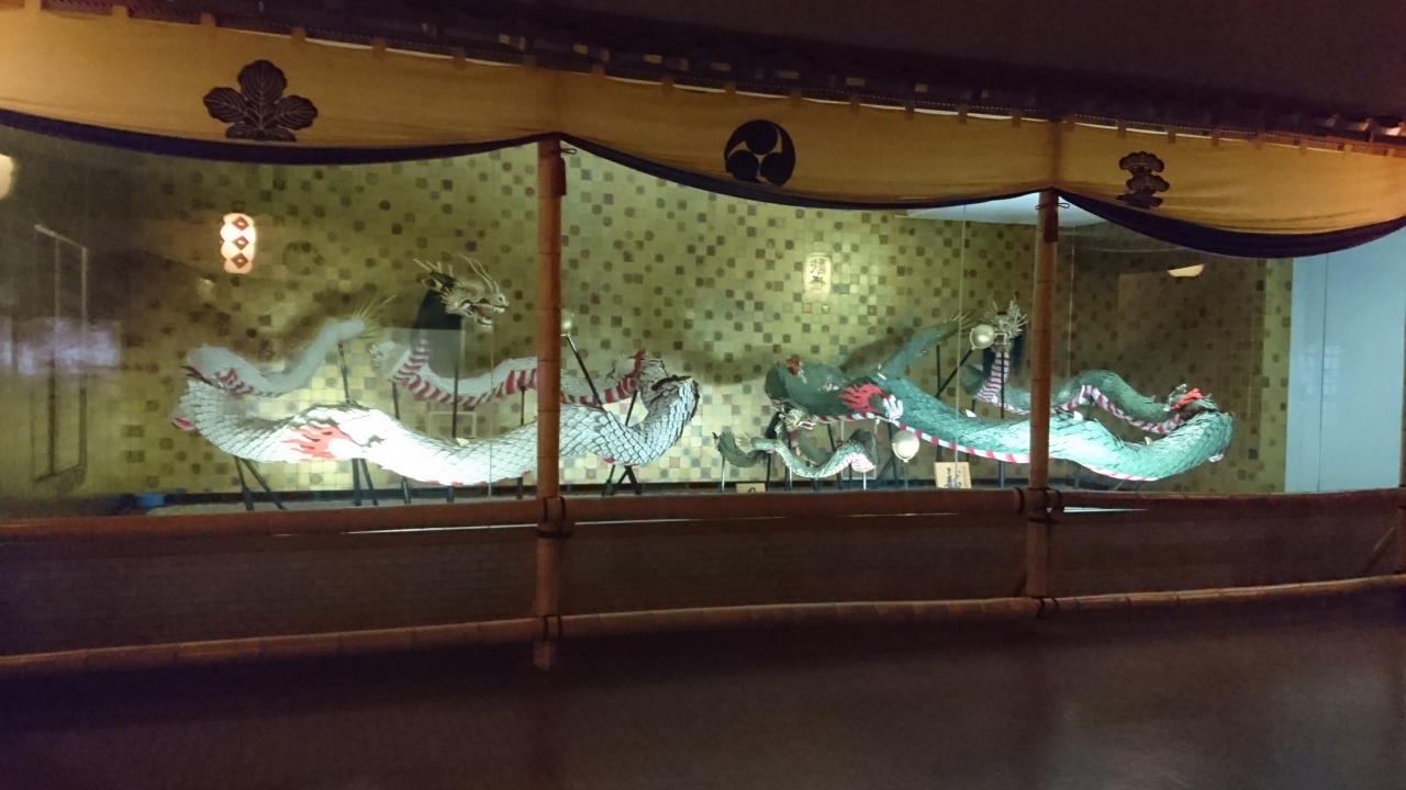 グラバー園を順路通りに進んだ先に長崎伝統芸能館があります。館内には、長崎の秋祭り「長崎くんち」で使われる龍踊りの白龍、青龍や各町の奉納踊りを先導する傘鉾などが飾られていました。無料で見ることができるので見る価値があります。