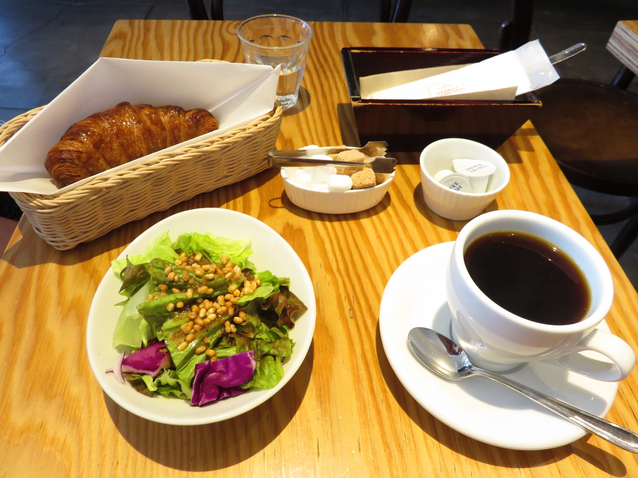 10時30分まではモーニングをやっています。数種類のモーニングがあり、その中で一番簡単なものをオーダー。コーヒーは、プレスとドリップがあり、ドリップコーヒーは、1杯のおかわり付き。なかなかのお得感でした。