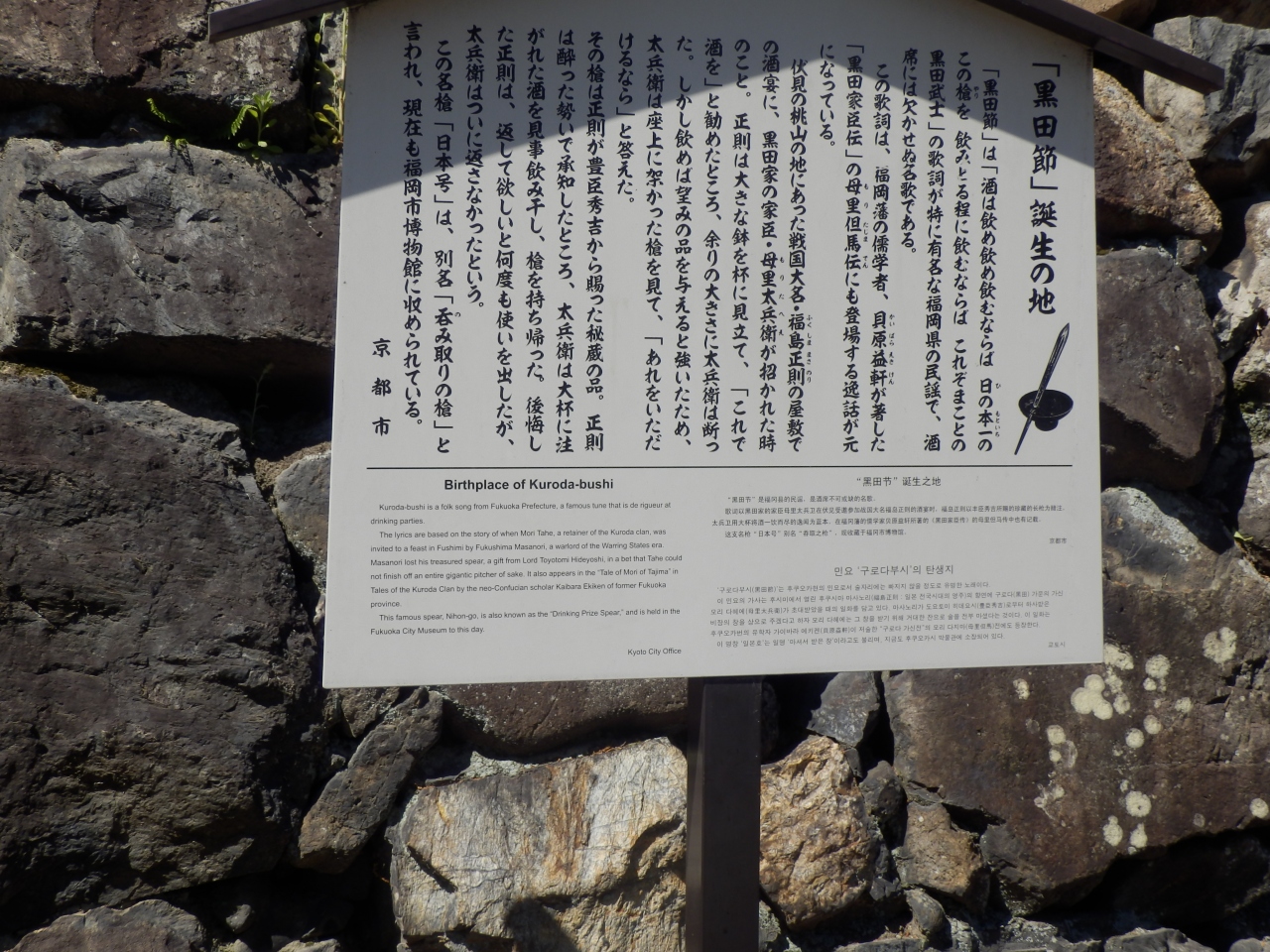 福岡県の民謡黒田節の発祥の地が京都市の伏見だった以外ですね