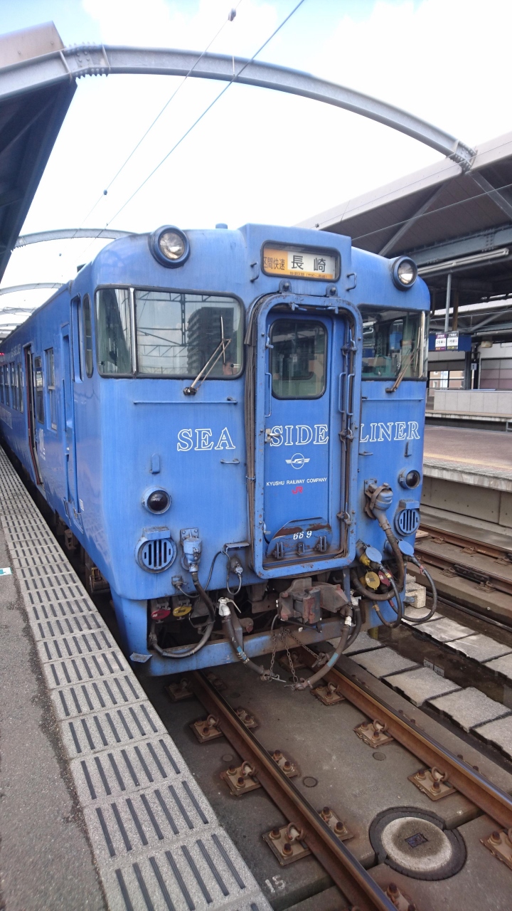 佐世保駅から長崎駅に向かうため、シーサイドライナーに乗りました。この列車は佐世保駅と長崎駅を大村線経由で走行するディーゼル列車です。大村線を走行するため、車窓からは海を眺めることができました。それも長い時間見ることができました。