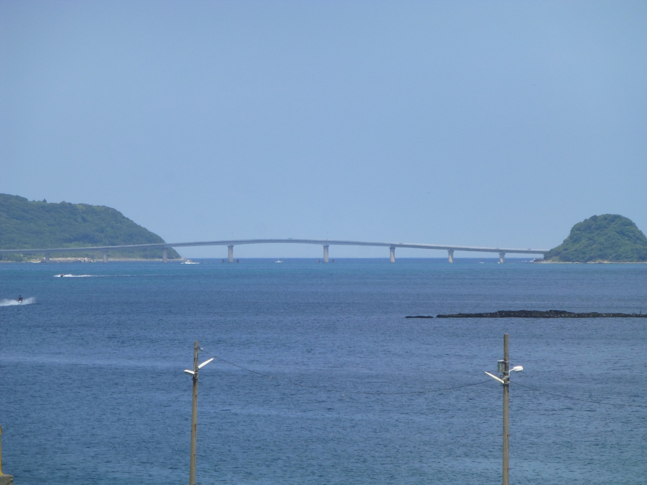 採れたての新鮮な果物や野菜、土産物などがたくさんあります。魚介類は早く行かないと売り切れになります。レストラン『わくわく亭』でイカの生き作り、とらふく刺身、ふく刺しぶっかけ丼などメニューも多く人気のようです。こちらの展望テラスからは、角島大橋の全景が眺められます。毎回魚介類を買って帰りいただくのが楽しみです。