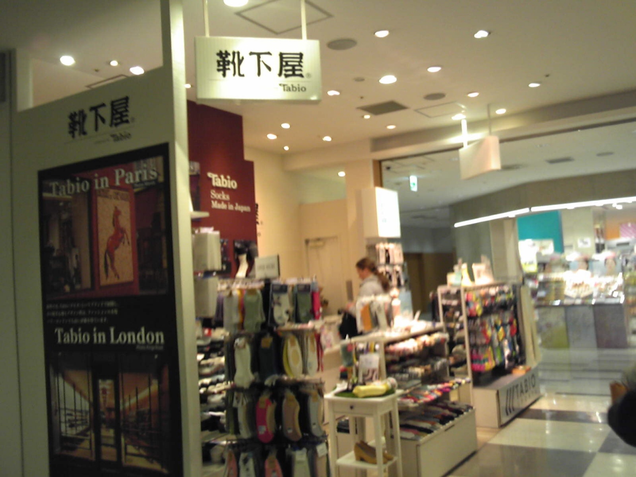かわいらしいデザインのソックスが並んでいる靴下屋、