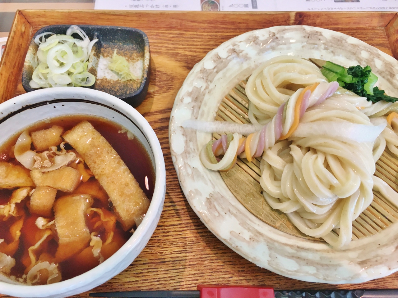 糧うどん800円を注文、うどんのコシは強く、つゆの味は薄目ですが添えられた薬味(醤油,唐辛子,辛味噌など)で味を調整すると一段と美味しくなりました。