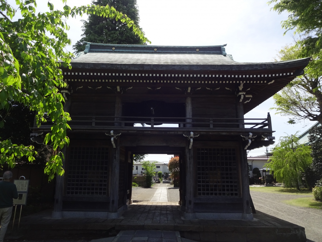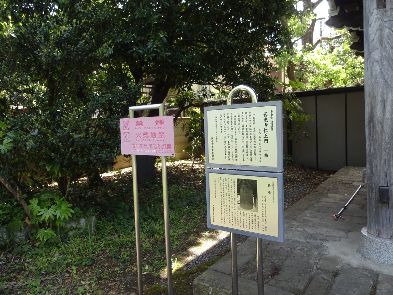 山門である仁王門は時代を感じさせるもので楼門となっており、二階部には鐘が吊されていました。