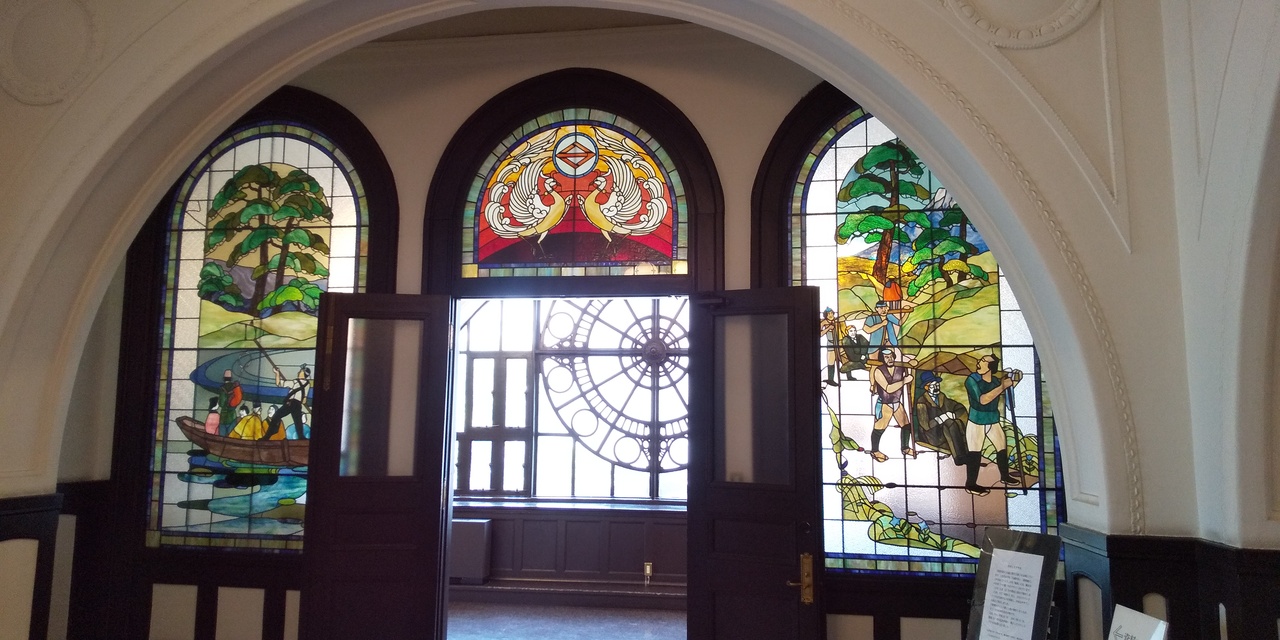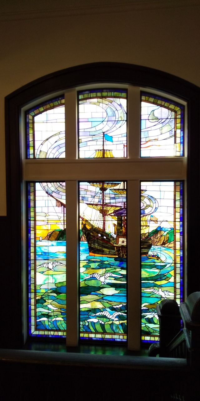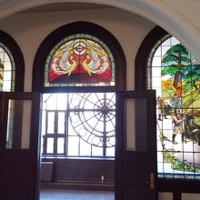 館内は自由に見学が可能であり、数ヶ所にステンドグラスが施されていて、とても素敵です。