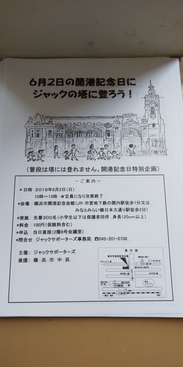 6月2日の開港記念日には、ジャックの塔に上れるイベントが予定されているようです。
