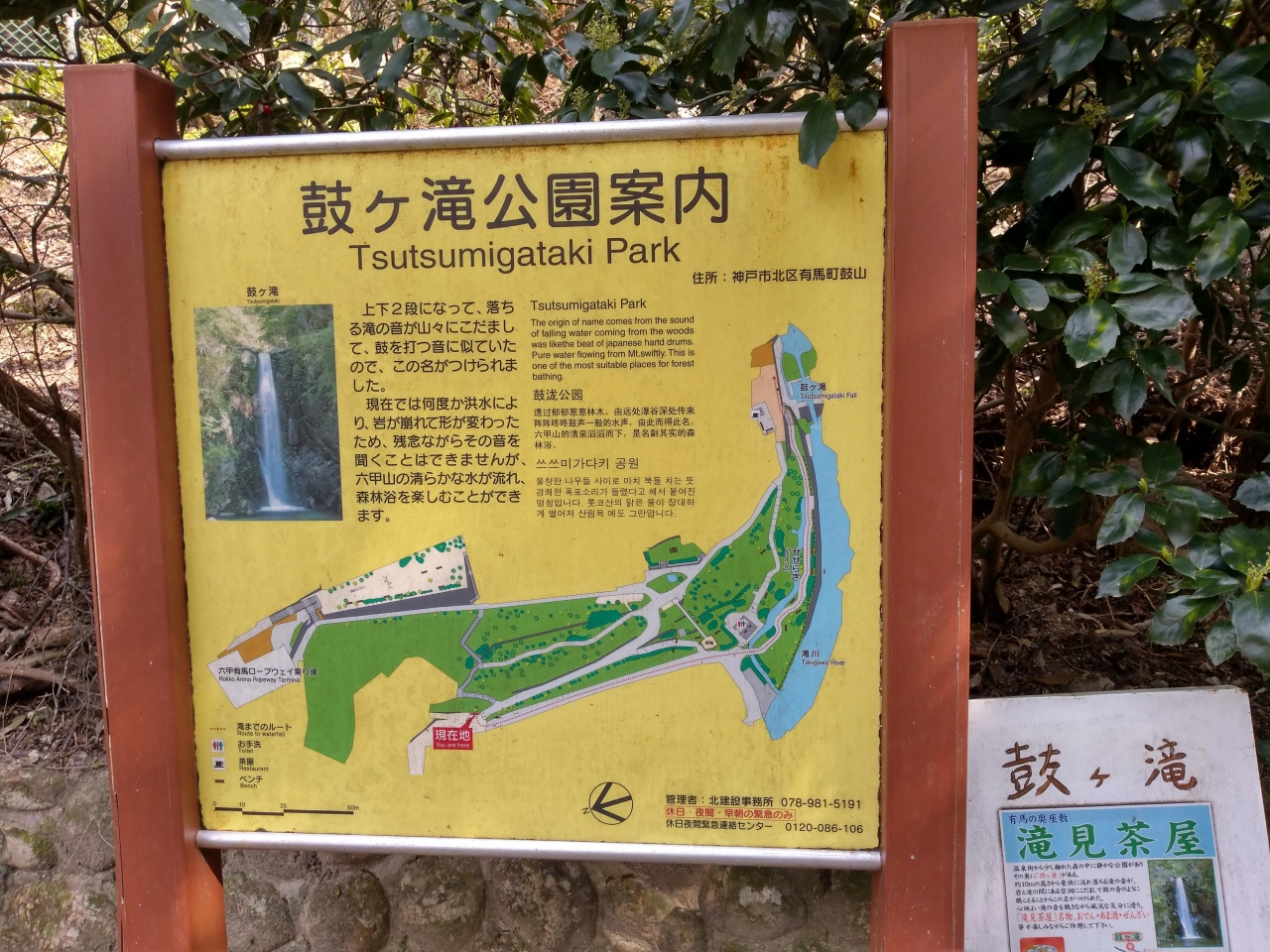 有馬町内から坂道を上がって、現行円を抜けて益池を超えた奥にある公園です。公園の奥には茶店があって、その奥に公園名にもなっている鼓ヶ滝あります。天気の良い日には風も通って、とっても風情がありますね。のんびりわんこと過ごせました。