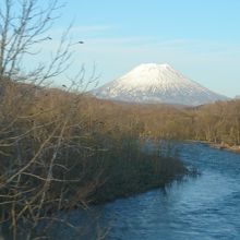 鈍行列車から、見事な羊蹄山が見えました。まさに、蝦夷富士。標高は、1898メートルとさほど高くはありませんが、その姿は雄大で神々しくもあります。列車が川を渡る鉄橋に差し掛かりましたが、下には、羊蹄山から流れる雪解け水が流れて水かさが多くなっていました。日本百名山にも選定されている山です。