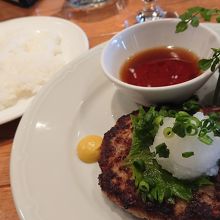 品川駅近辺でランチを探しているときに見つけました。アトレ品川にある他のお店よりは、比較的リーズナブルだった印象です。一人でしたので、カウンターに案内されました。ハンバーグとオムライスで迷っていたら店員さんが声をかけてくれて、それぞれ丁寧に教えてくれました。ハンバーグを食べましたが、脂っこくなくあっさりとしていておいしかったです。特製のタレをつけて食べましたが、スーパーマーケットで売っている一般的なお蕎麦のつけつゆのような味で少し残念でした。しかし、ハンバーグだけで十分おいしかったので満足です。