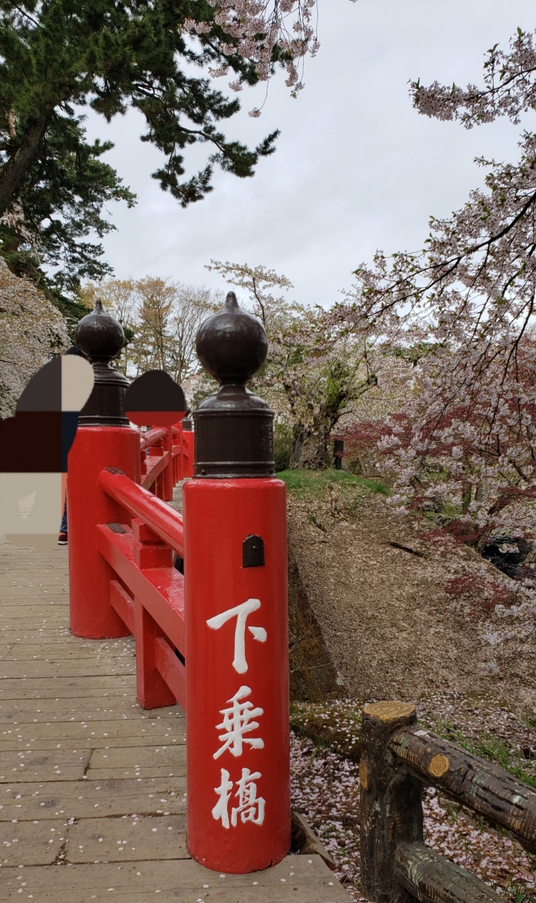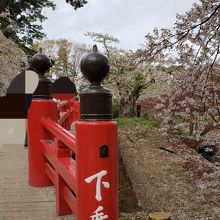 弘前城公園内にあります、本丸と二の丸に架かる橋でここで馬を降りなさい、という場所だったことが橋の名前の由来とされています。
