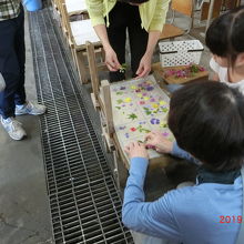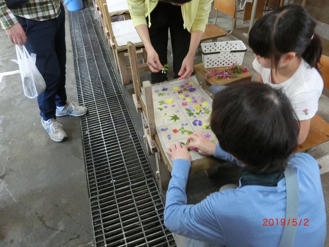 女の子とお母さんが和紙で紙飾りを作っていました。