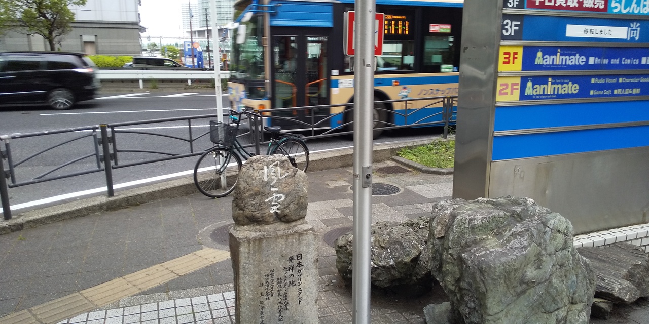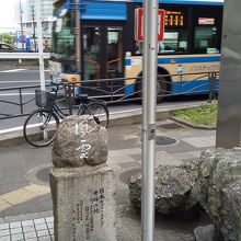 横浜駅の東口改札口前のバス停近くにある石碑です。