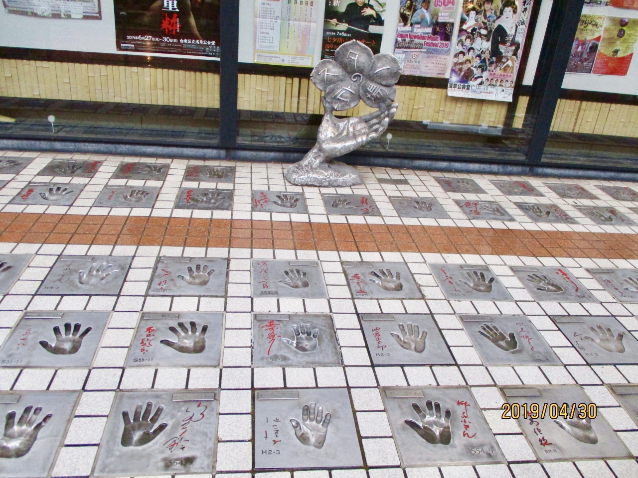 浅草オレンジ通りに面した台東区立浅草公会堂の前の庭にある広場で、台東区が日本の大衆芸能に活躍された芸能人の手形とサインを収めています。現在では、この広場のスペースがいっぱいになった為、オレンジ通りの歩道にも追加されています。