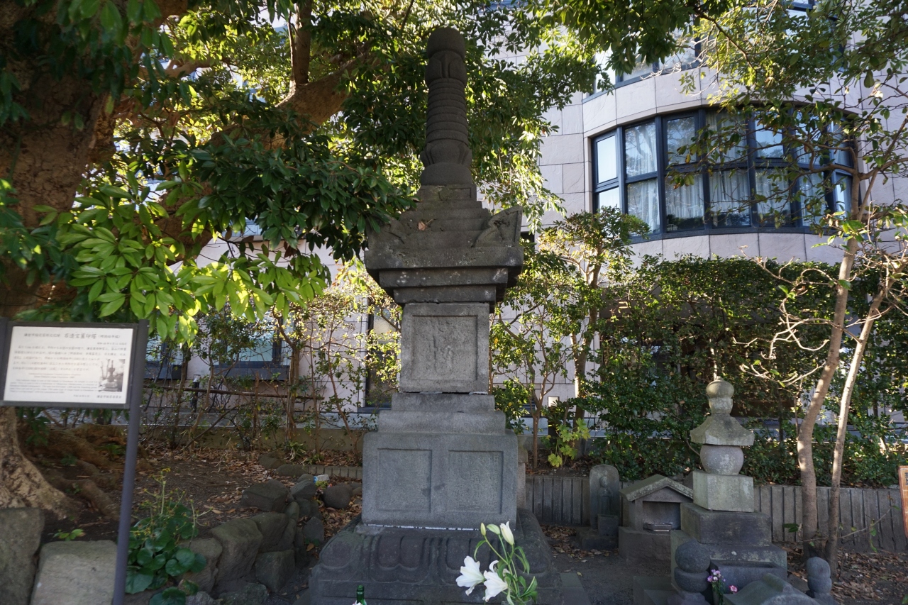 若宮大路の一の鳥居近くの歩道脇。茂みの中に建つ石造宝篋印塔ですが、高さ3.4mの大型の宝篋印塔は明徳4年(1393年)の建立です。