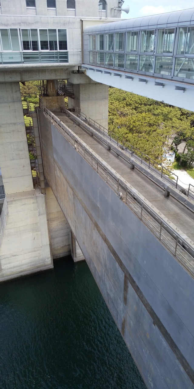 沼津の港を津波や高浪から守る巨大な水門が「びゅうお」。水門の高さ30メートルの地点には、眺望を楽しめる展望通路があります。