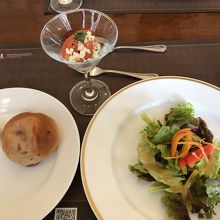 メインの料理もボリュームがあり、焼きたての美味しいパンが食べ放題。